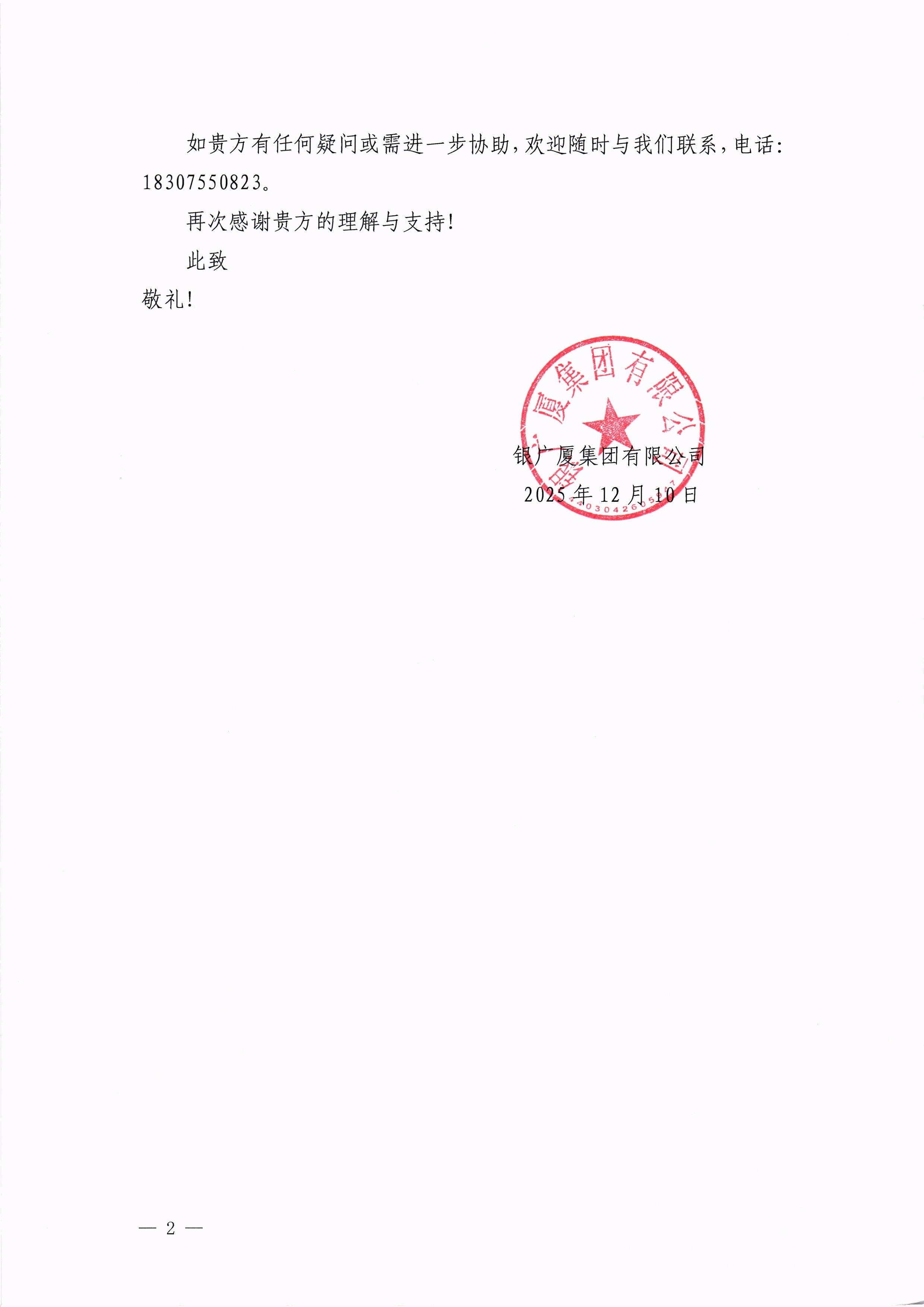 即日起,请贵方就相关事务与承接人直接对接,银广厦集团将全力配合。