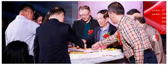 (嘉宾上台共切庆典蛋糕分享喜悦)