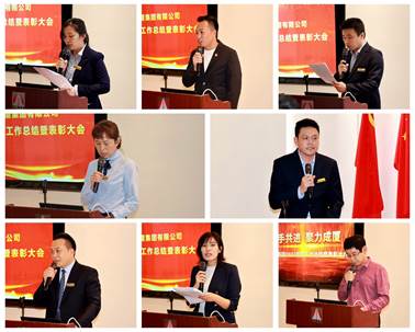 首先,集团公司各部门负责人及关联公司总经理依次进行了工作总结,与在座的同事一同分享工作成绩与经验,探讨工作中的不足,以及寻求改进措施。通过各位领导的发言,让我们知道过去的一年虽然是风高浪急、充满挑战和风险的一年,但整体而言我们走得比较的踏实和笃定,因为我们大家都相信付出的力量,相信平台和团队的力量,并愿意付出辛勤的劳动,愿意放大自己的责任和担当。