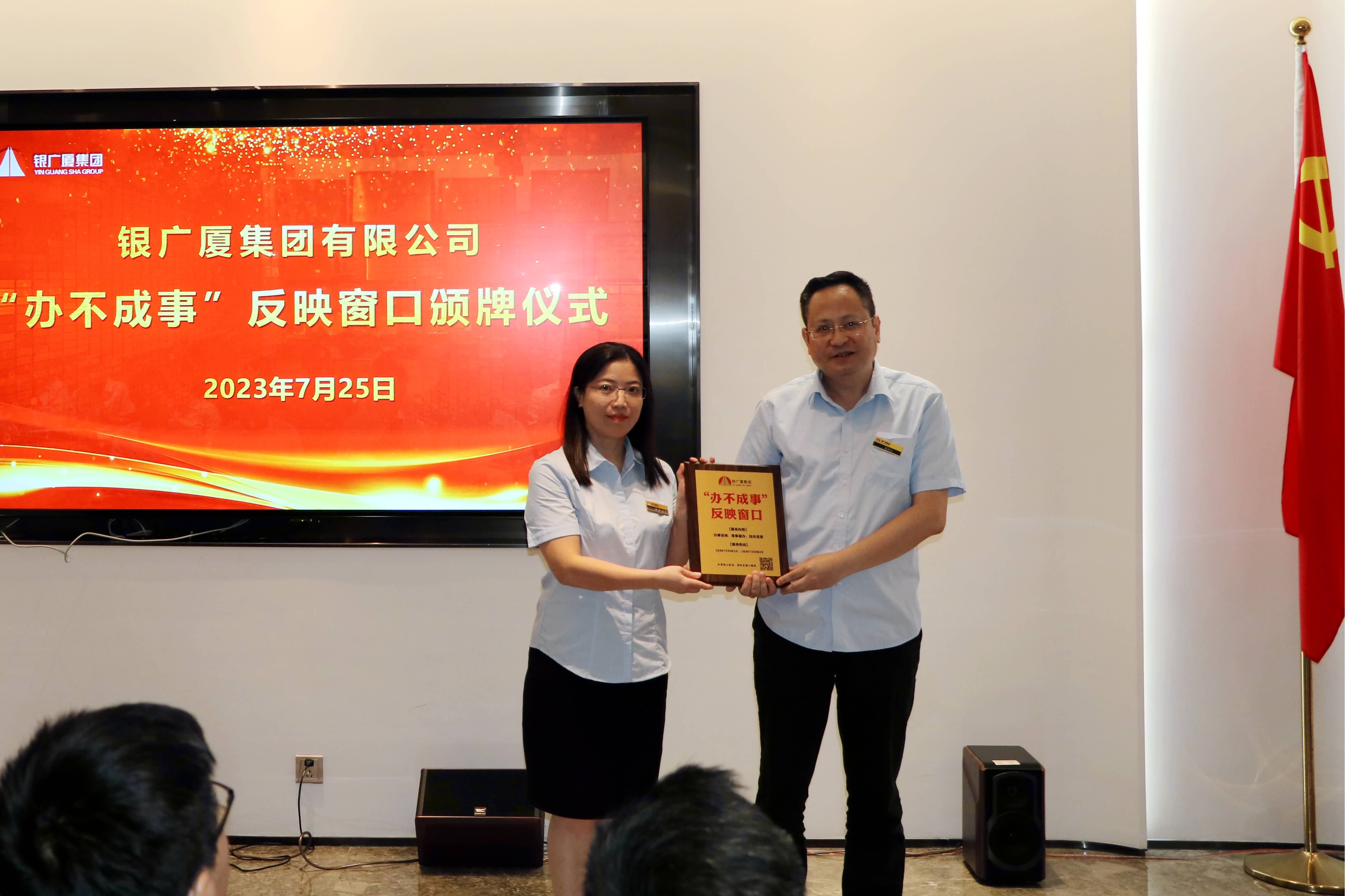 “小窗口”将有“大作为” ——银广厦集团举行“办不成事”反映窗口颁牌仪式