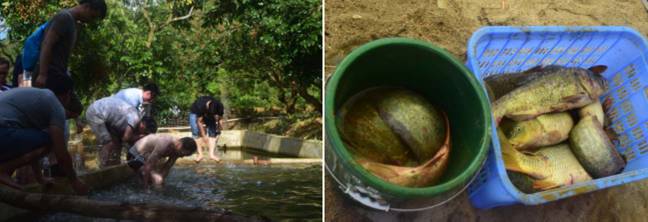 避暑纳凉,品尝美味,稍作休息后,开始采摘和捞鱼。