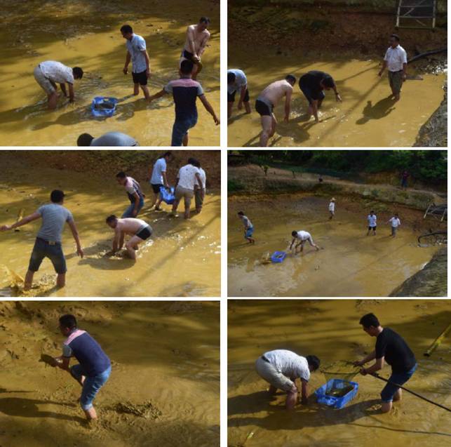 捞鱼开始了,池塘中,男同胞们奋勇争先捕鱼的场面,不仅丰富了我们的餐桌,同时也捕获了在场观战的女同胞们敬仰的目光。