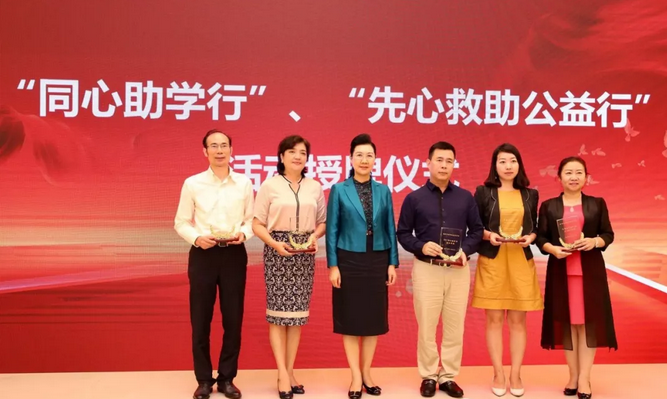 陈镇文董事长领“同心助学行”爱心单位奖牌