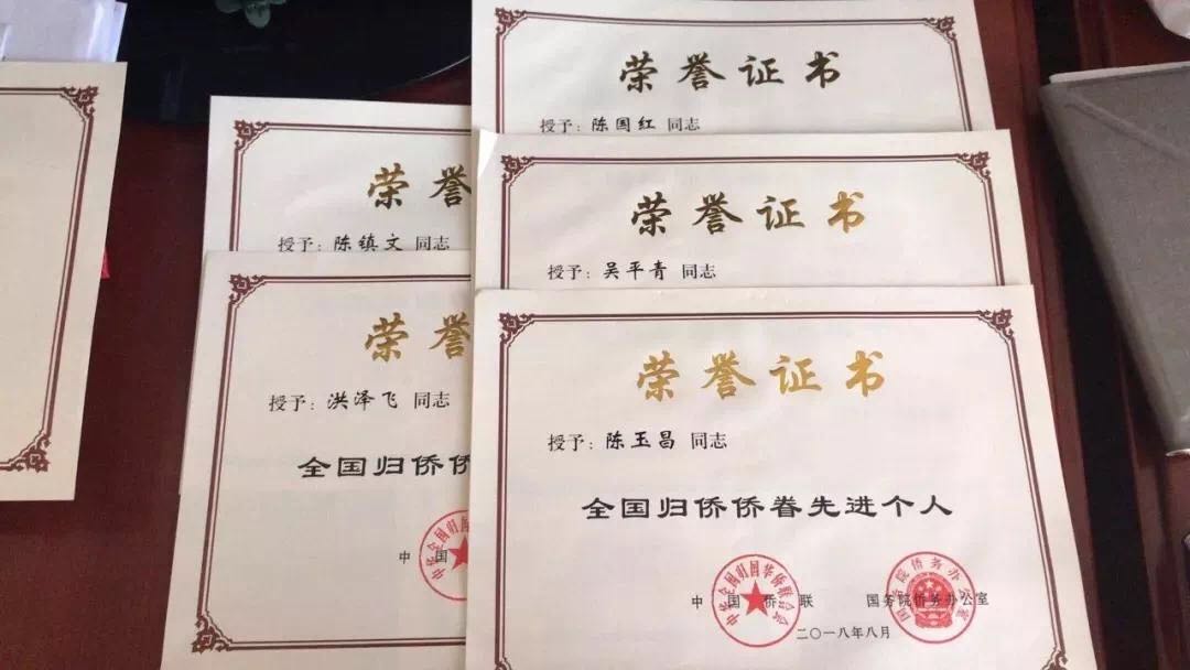 热烈祝贺我司陈镇文董事长被授予“全国归侨侨眷先进个人”荣誉称号