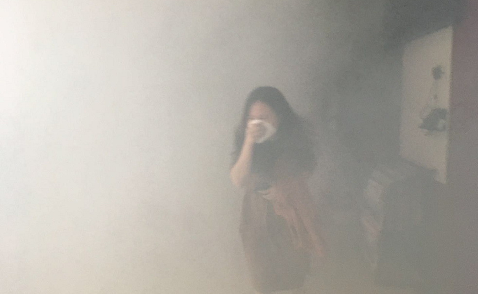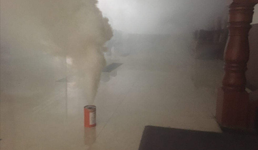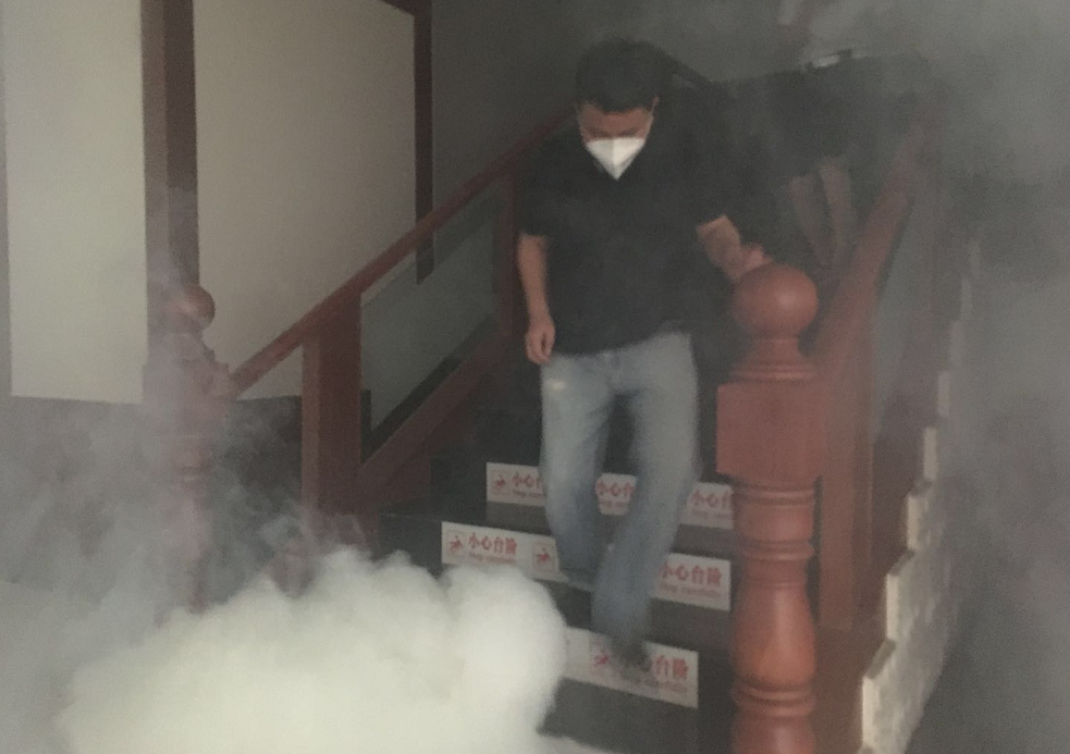 点燃烟雾弹,制造“火灾”现场