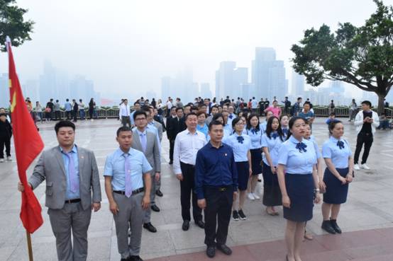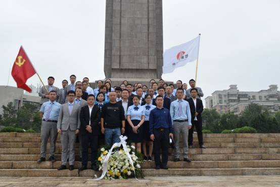 纪念碑前,党旗飘扬,列队整齐,庄严肃穆,在党旗下,由集团党委书记陈镇文带领全体党员向革命先烈郑重宣誓。集团全体成员列队向革命烈士三鞠躬并敬献花圈。