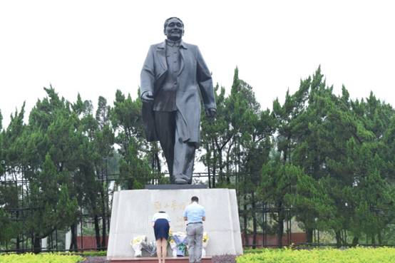 拜谒完革命先烈之后,集团全体成员徒步登上莲花山,瞻仰邓小平同志雕像。由李颖同志带领党员代表向邓小平雕像敬献鲜花,集团全体成员向邓小平雕像三鞠躬。