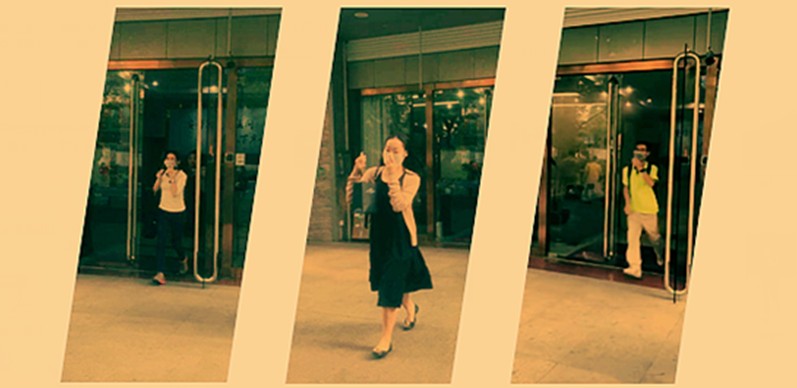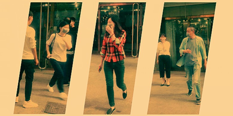 全体员工听到警报后,以口罩捂鼻,在应急人员指挥下,快速逃离“火灾”现场,聚集于总部大楼前空地处清点人数。
