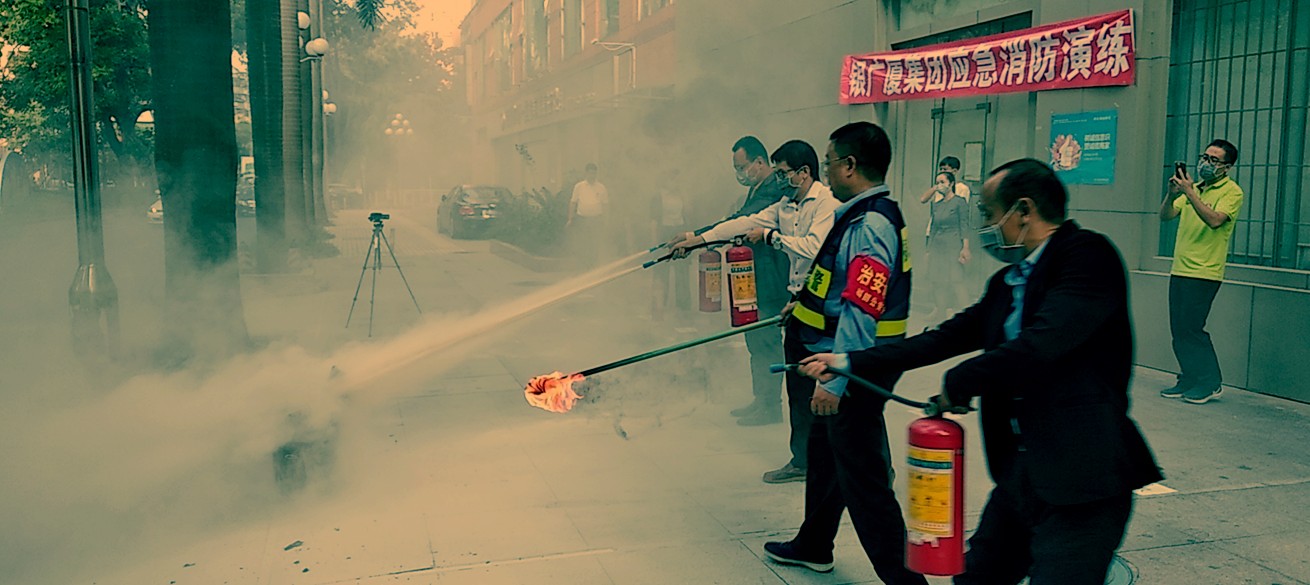下午16:00 ,“演习开始!”随着演习总指挥一声令下,刺耳的警报声响彻大楼,总部大楼内浓烟四起。消防应急小组成员紧急就位,疏散指挥、关电闸、报警、引导救援……各项工作按既定程序有条不紊展开。