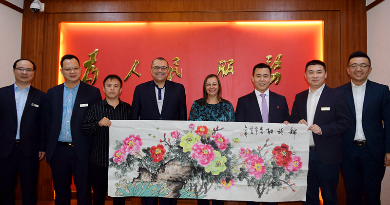 2020年1月16日下午,南非国民议会事务主席弗罗里克及夫人、南非深圳总商会会长陈云生、南非中华两岸侨商联合会会长庄斌武、南非深圳总商会副会长钟世鹏一行莅临银广厦集团进行调研指导。银广厦集团董事长陈镇文先生携公司领导班子出席座谈会。