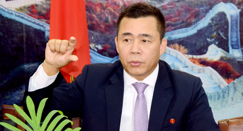 董事长陈镇文先生首先代表银广厦集团对佛罗里克一行表示热烈欢迎,并简要介绍银广厦集团的近况。陈镇文先生说,银广厦集团坚持做建筑业最具责任感的阳光企业,坚持诚实守信的经营理念,并且长期关注公益事业,始终心怀感恩,回馈社会,多年来持续资助广西百色贫困地区的教师和新疆喀什贫困大学生等。南非与中国是多年友好合作伙伴,只要南非有需要,尤其是在孩子们的教育上,定当尽绵薄之力。银广厦与南非在房屋建设、市政建设、道路建设等方面也有广泛的合作空间,期待与南非的交流合作越来越多。