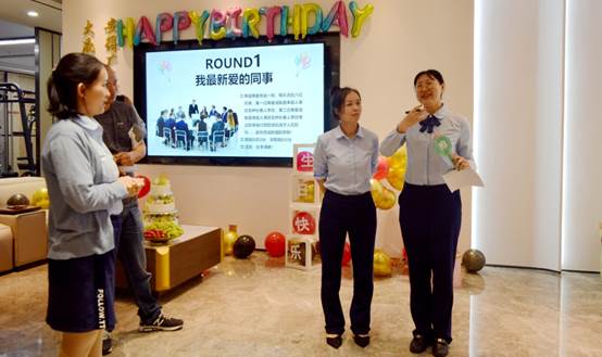 主持人李欣代表集团公司为寿星们送上生日的祝福并致辞,她感谢大家在各自工作岗位上付出的努力,她希望这诚挚的祝福能为同事们带来更多美好的回忆,并在今后的工作中共同努力,共同进步。