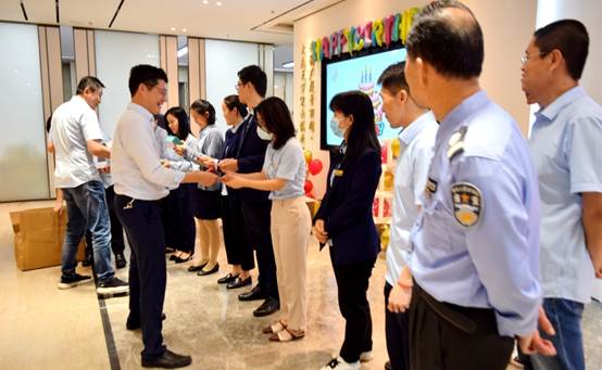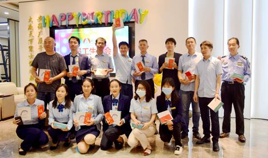 活动最后,人力资源管理中心总监沙小建和工程管理中心经理陈迪为寿星们送上了精心准备的生日红包和生日礼物,再次表达了对员工辛苦工作的感谢,现场气氛温馨融洽,欢笑掌声不绝于耳。各位寿星纷纷合影留念,一起纪念属于自己的日子。